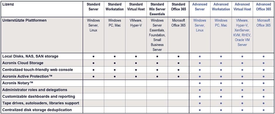 Wartung: | Acronis Advantage Premier (AAP) Maintenance und Support